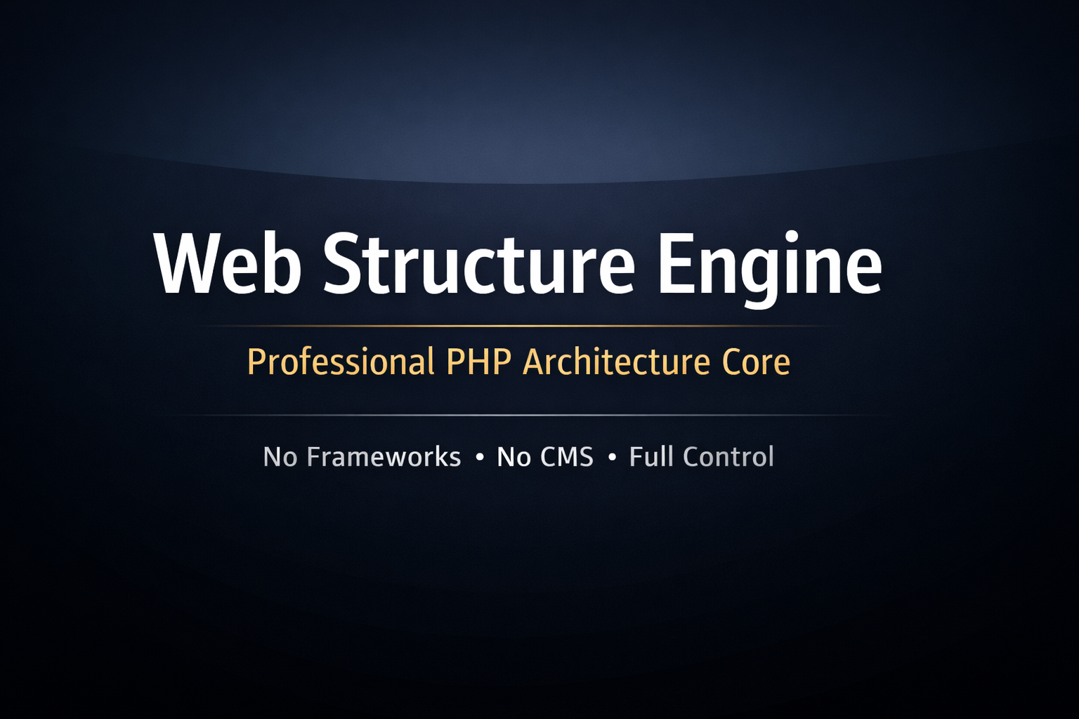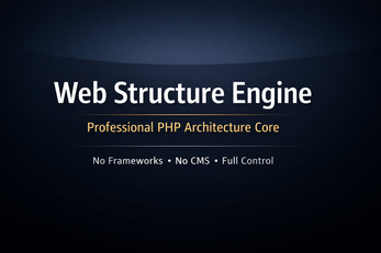 Web Structure Engine 1.0 is a professional, proprietary PHP web architecture core, designed for developers who want full control, clean structure, and production-ready foundations without relying on frameworks or CMS platforms.